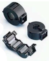 Similar ferrites (cylindrical non-clip on types) are often found on the signal cables of VDU screens and are used to suppress unwanted signals, these can often be stripped off scrapped display screens and 'recycled'