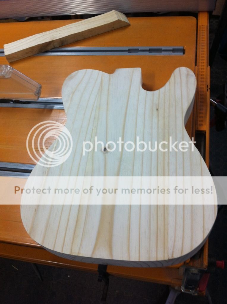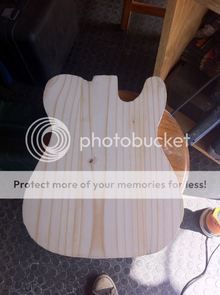 And as for the Tele, after the router destroyed the edge of the mahogany, almost taking my hand with it, my uncle had a bit of a fit about routing the inside of the mahogany (the hollow wings) and wanted me to abandon the project because I'm not experienced etc etc.... Naturally stubborn as I am I said no and said I'd build a solid body first out of a softer wood to show him that the router/bit is the problem and not me. I spent all of today shaping the body and hopefully tomorrow I can have the pickup routs done ?