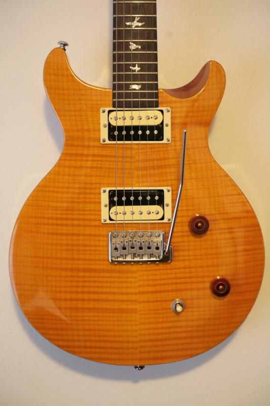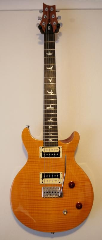 Its a PRS SE Santana 3. Made in 2011. Immaculate condition, which is nice, as the Gretsch was also in the same condition. This thing plays beautifully, and once I've tweaked the setup, it may just become my no.1 go to guitar, ahead of my LTD EC-500! I'm really liking it! Its also much much lighter than the Gretsch, so that's a super bonus!