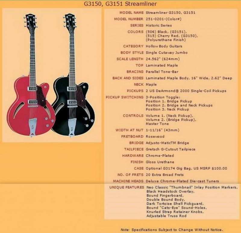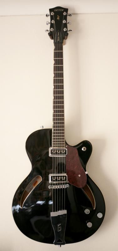 Its a Gretsch Historical Series G3151 Hollow body. And I have to say that its flippin gorgeous! There does however appear to be a lot of confusion about this particular model, and in fact the entire Historical series... Many sites say its US built, including a few Gretsch talk/chat sites, whilst another Gretsch dedicated site suggests that they are actually Korean, but assembled/wired/setup in US. There is no real agreement about this? Also, many sites suggest that its not actually a hollowbody, but only a semi-hollow, but this one I've picked up is most certainly a full hollow!