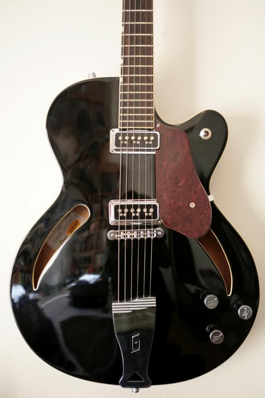 The only thing that seem to be agreed upon is that the pickups are DeArmand 2K's, and that its one mighty fine instrument! I'd have to agree! Its bloomin' marvelous! As you'll also remember, I've never been a fan of Black guitars, hence why the PRS SE Semi had to go, but the only guitars that I have liked in black have been Gretsch's and Dusenbergs! Just something about the lines of these guitars makes the black work!