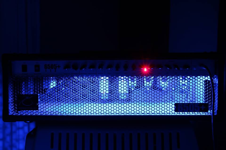 Peavey 6505+ combo 112 that i modified into a head, changed the tubes to 12ax7 tung sol's and 12dw7's from JJ and JJ 6L6GC power tubes. I also put blue led strips into the head.