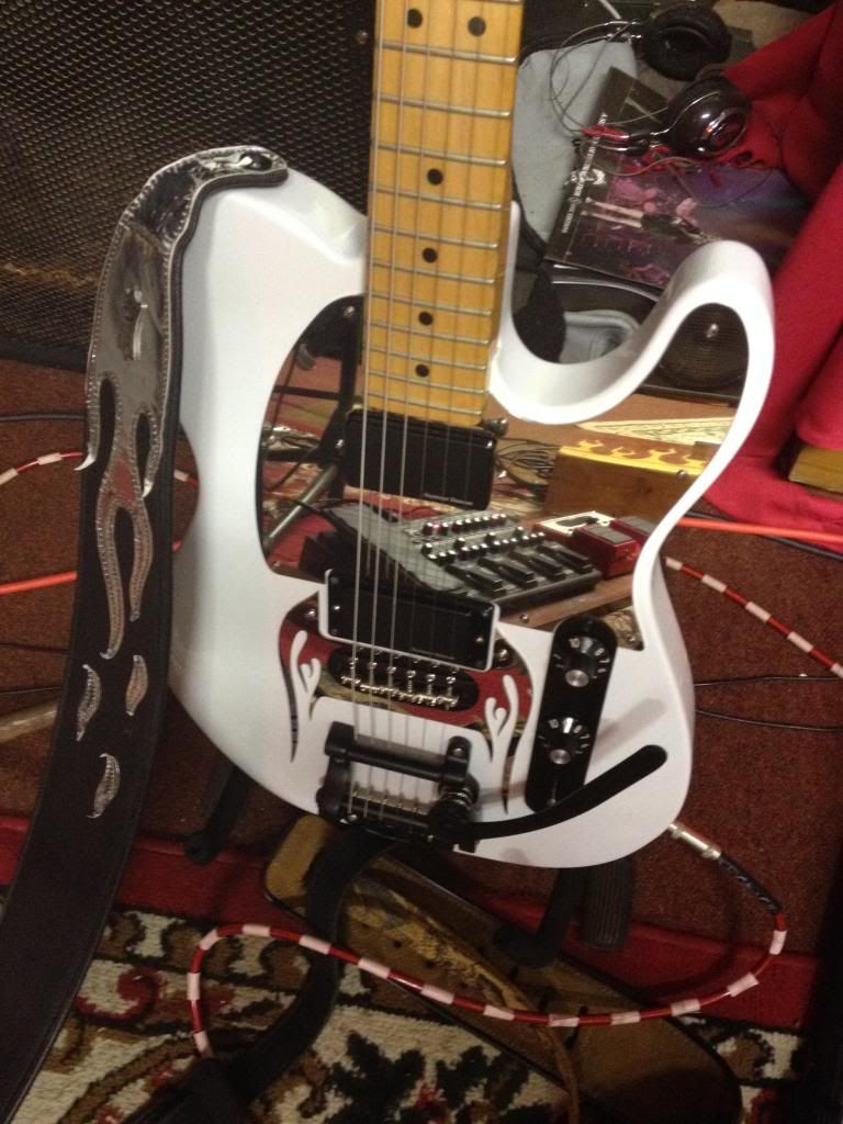 Finally my '72 Ibby. Added some pearl covered dome knobs and fitted a bone nut (Sometime in her life sombody converted her to a lefty and then back again to a righty - filling up the widened nut slots with super glue. Worked but looked like a dog's butt) Also had to swop out the bridge pup (now a Tonerider Vintage Plus I think) which was held together by rust and duct tape, and as a result also the bridgeplate because the original pup was SC sized and the replacement pup didn't fit.