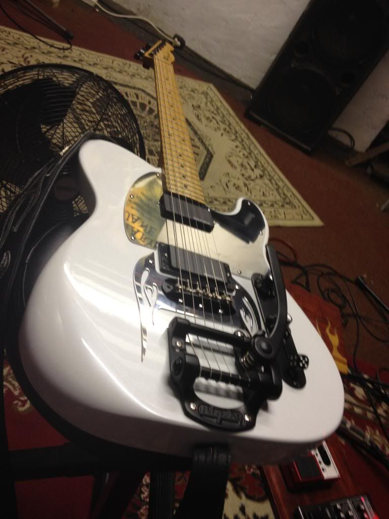Next up my Fender FMT Custom. The previous owner had the Kahler trem fitted. I switched out the standard black pups to a set of gold SD 59's and replaced the wonky toggle switch.