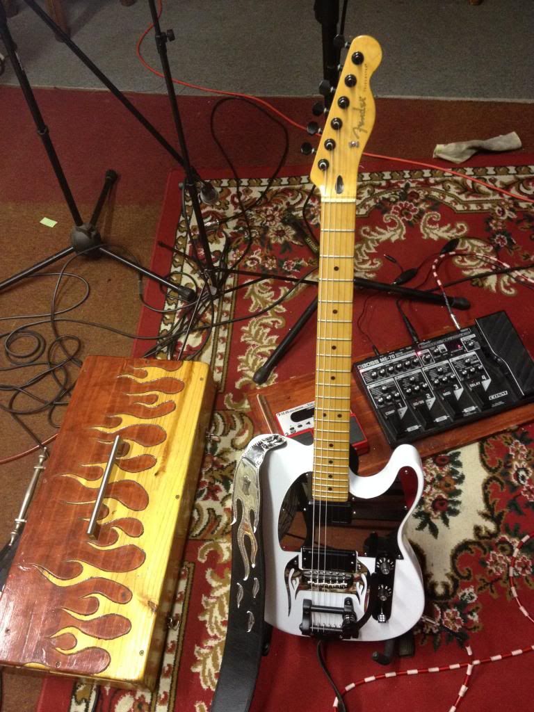 Firts up, my current Go-To. She's a Fender FSR std model, Ash body, maple neck. Currently sports an HD Super Chrome in the neck and an HD Super 90 in the bridge with a 4-way switch.