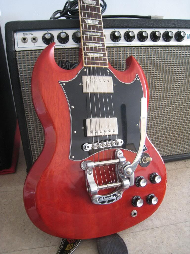 i currently own 3 guitars with stoptails and tune-o-matic bridges, so it might be nice to have the option of the bigsby on one of them and the SG is the natural choice since it is the lightest and adding the extra weight to it won't kill me when standing with the guitar.