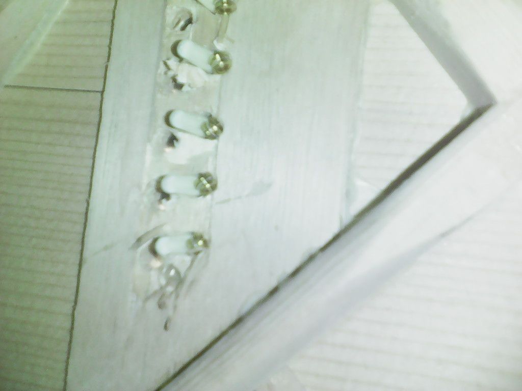 As you can see the bridge is quite chewed up. I think it could be remedied / protected from further damage by a small aluminium (for weight) plate. Should one attach it with epoxy? Is there a filler one can use to build it up before using the plate?