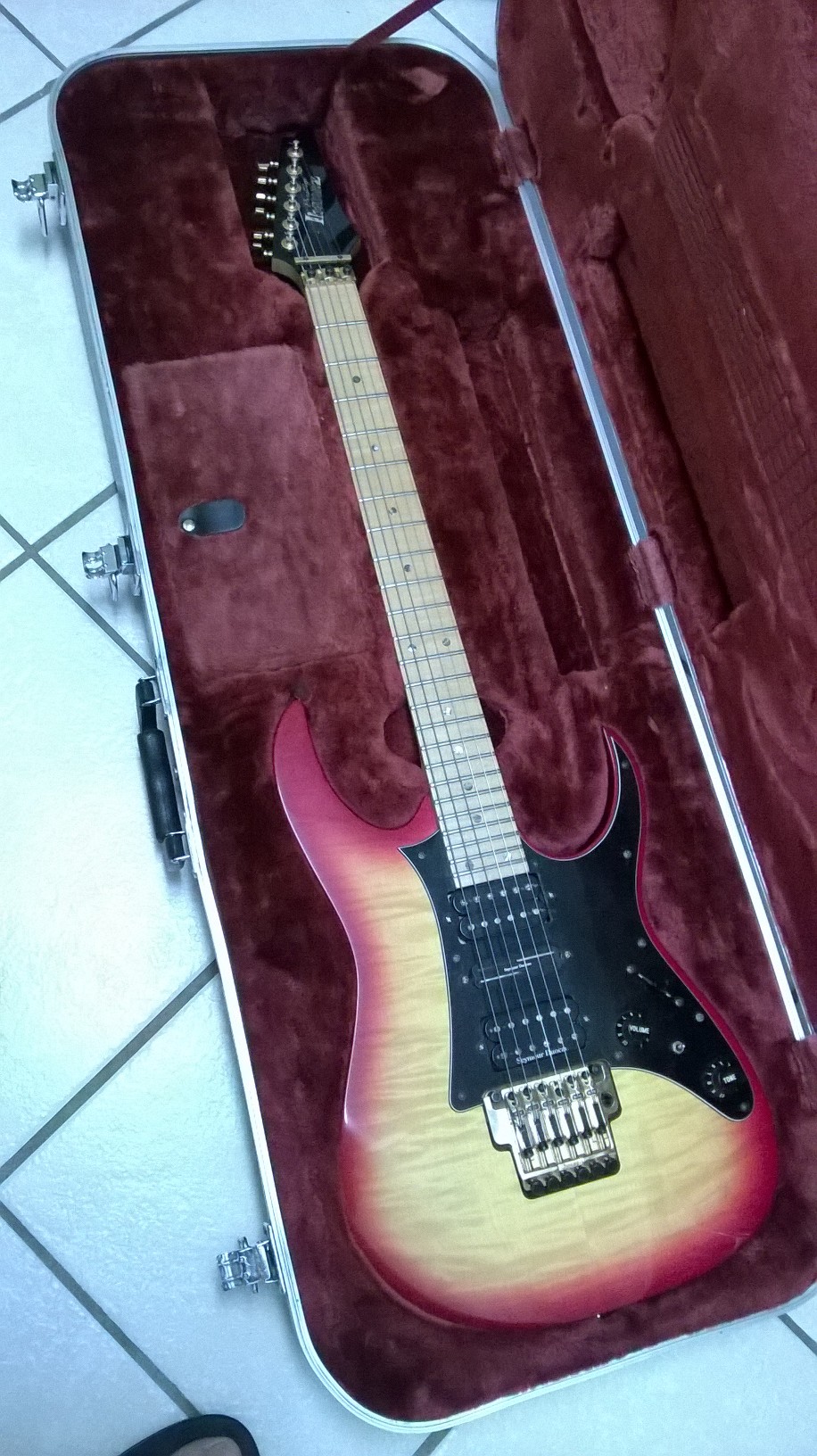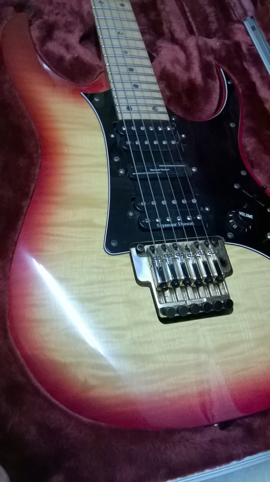 Ibanez RG1550FM with Team J Craft case. Guitar in excellent condition. The case has seen better days. Recently serviced and had a fret dressing done and wiring checked. Has Seymour Duncan pickups. Neck: APH1B Middle; Don't know Bridge: IVR98 Has an aftermarket coil split switch for the neck and bridge pickups. R 9 500 neg. Pretoria area.