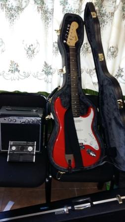 Squier Bullet stratocaster, whammy bar, case, guitar strap, practice amp and Korg AX3G multi pedal (No PSU). All in good condish. Vaal Triangle R3000.00 negotiable PM me if interested.