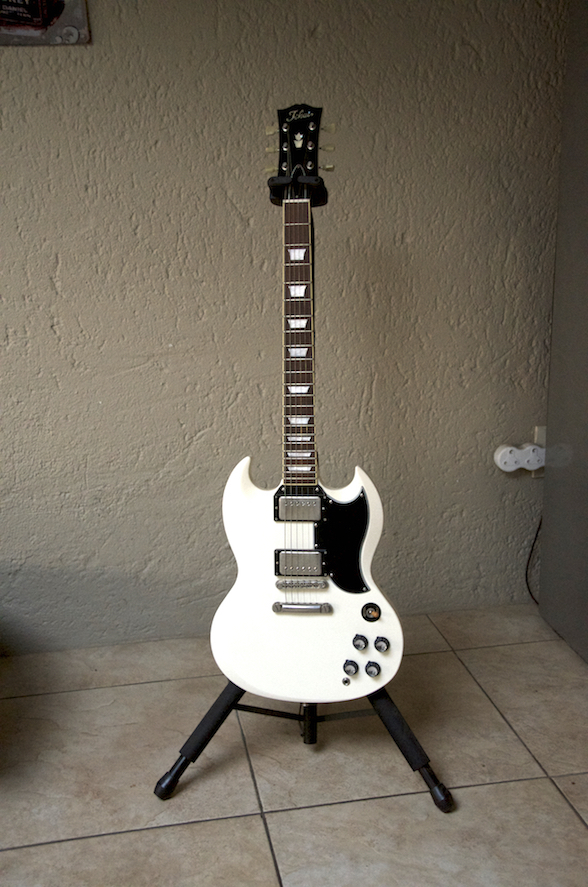 Lovely tone: somewhere between the LP die-hard's dream, and the bite n twang of the Fender fan, lies the unmistakable lush scream of the SG. And trust me, Tokai have it down pat. This one is stock standard, although to call this one 'white' is not doing it justice. A little off-white, a little eggshell. It's gorgeous.
