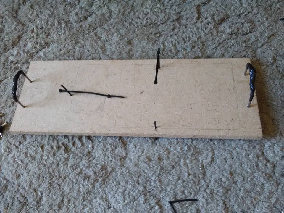 4. 2 strips of hook-and-loop valcro lengthwise on planks in base.